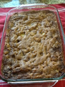 Mix all ingredients and press into a greased 9 x 11 baking dish. Bake at 350 for 1 hour or until center bounces back when touched. Don’t know how the B&B served it, but I plan on serving mine with a dollop of fresh whipped cream.