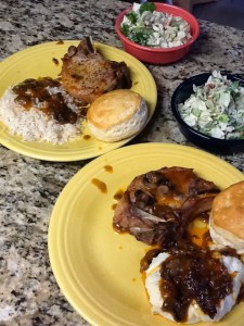 This week I’m going to provide a few recipes for dishes that I have been making for many years. What they have in common is that all of them are dishes that my husband has been asking me to make lately. Bill tends to eat dinner so that he can then have dessert. The main meal is simply a path to what he really enjoys – a chocolate something-or-other. But there are a few dishes he enjoys a lot. These tender pork chops are his personal favorite, and a snap to make on a weekend night.