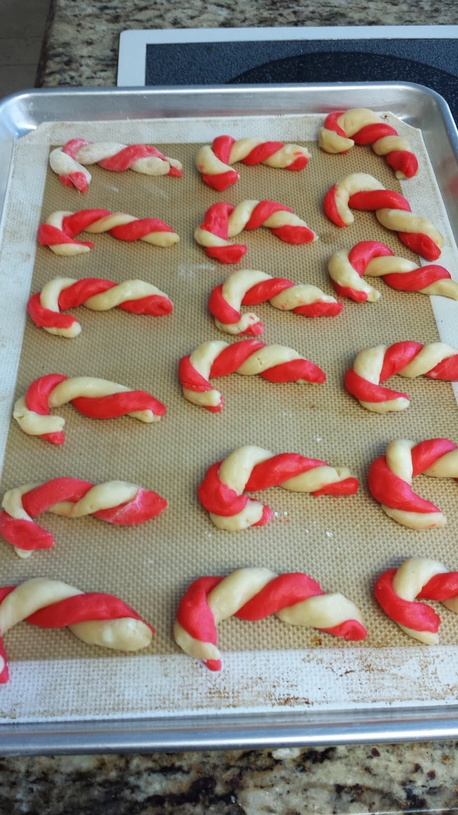 Nana’s Notes: The original recipe calls for peppermint extract instead of almond extract, but Bec said she didn’t want them to be so pepperminty, and I agreed. I was fearful that they were going to be more complicated than they actually were. They are very Christmasy and delicious.
