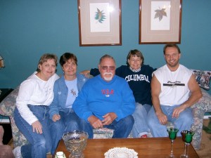 Bill and I spent Thanksgiving in London the year I turned 50. On the way home, there was a man sitting in the seat in front of me on the plane who had a terrible cold. He spent the entire flight hacking and sniffing. I managed to catch that cold. It’s the worst cold I have ever had to this day. It was in my head and my chest, and I even managed to get pink eye. The cold went on for weeks. But the thing is, I had made plans for a gigantic birthday celebration .My sister flew in from Washington, DC, and my brother drove in from Arizona. My sibs even ordered a turducken for the occasion! (A chicken stuffed into a duck which is stuffed into a turkey.) Unfortunately, it was a party I barely remember. Here is a photo we took on that day 10 years ago: