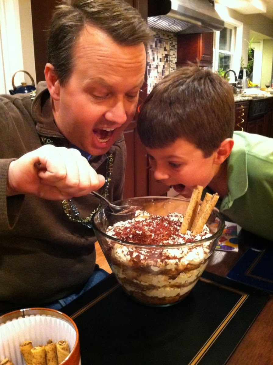 The adults were given an adult dessert of tiramisu, heavily flavored with coffee liquor. It was light and delicious. And beautiful, as you can see.