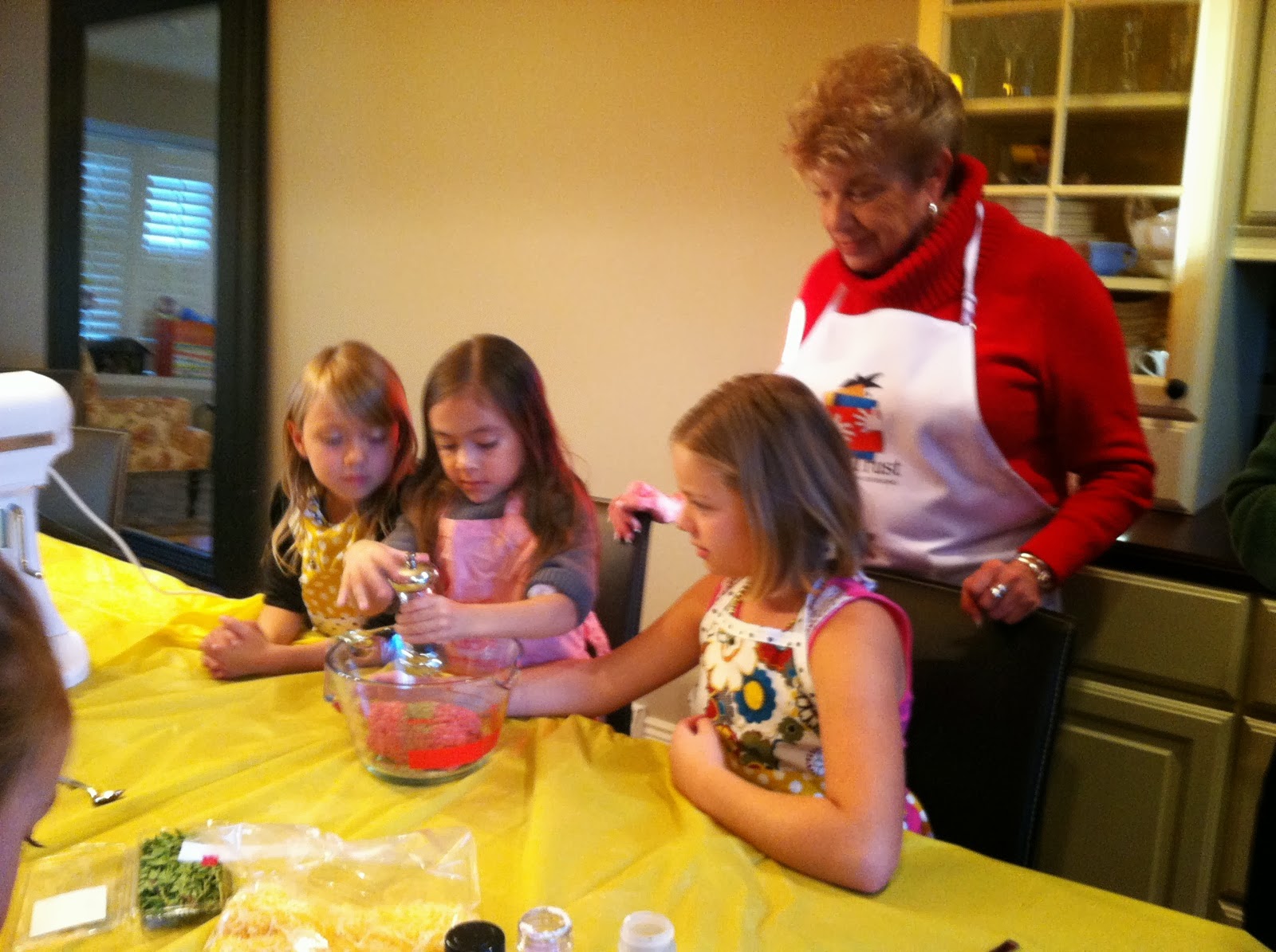 I am sorry to say that I don’t know much about Mark and Susan (except that they are excellent chefs). My suspicion, however, is that they spend most of their time working with groups exactly as described above – in team-building exercises or holiday functions for adults. I would guess they don’t often work with children – much less six children between the ages of 3 and 10. They were amazing. I can’t emphasize that enough. They never got impatient. They stayed calm as flour was flying. They didn’t appear to get worried when a 5-year-old was seasoning the meat. And they got every single child involved in a way that was fun for everyone.