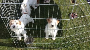 We saw dogs ranging from the tiniest Chihuahua to the grandest Bull Mastiff, and all sizes in between. We saw slobbering hounds, prissy Poodles, and the friendliest little Jack Russell puppies that you can imagine. See?