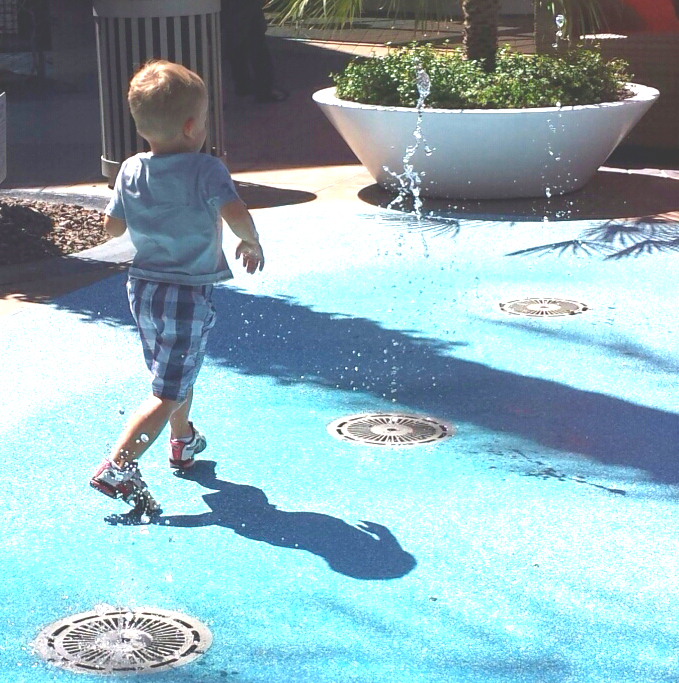We went out, and for the next 45 minutes the child ran back and forth and back and forth and back and forth through the water fountains. There were no other children, but that didn’t matter. Occasionally he would lay down on one of the fountains, giggling as the water tickled his stomach. Once or twice he would look down into a fountain that wasn’t currently spewing water only to have it then shoot forth into his face. No matter. He wiped his eyes and continued running back and forth and back and forth and back and forth.