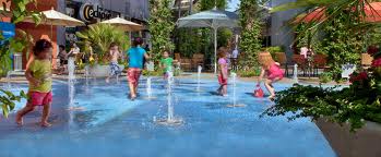 So I carefully approach the fountains, feeling the temperature of the water (which, to me, felt quite chilly). Austin followed suit. He was fully clothed in shorts, shirt, tennis shoes and socks.