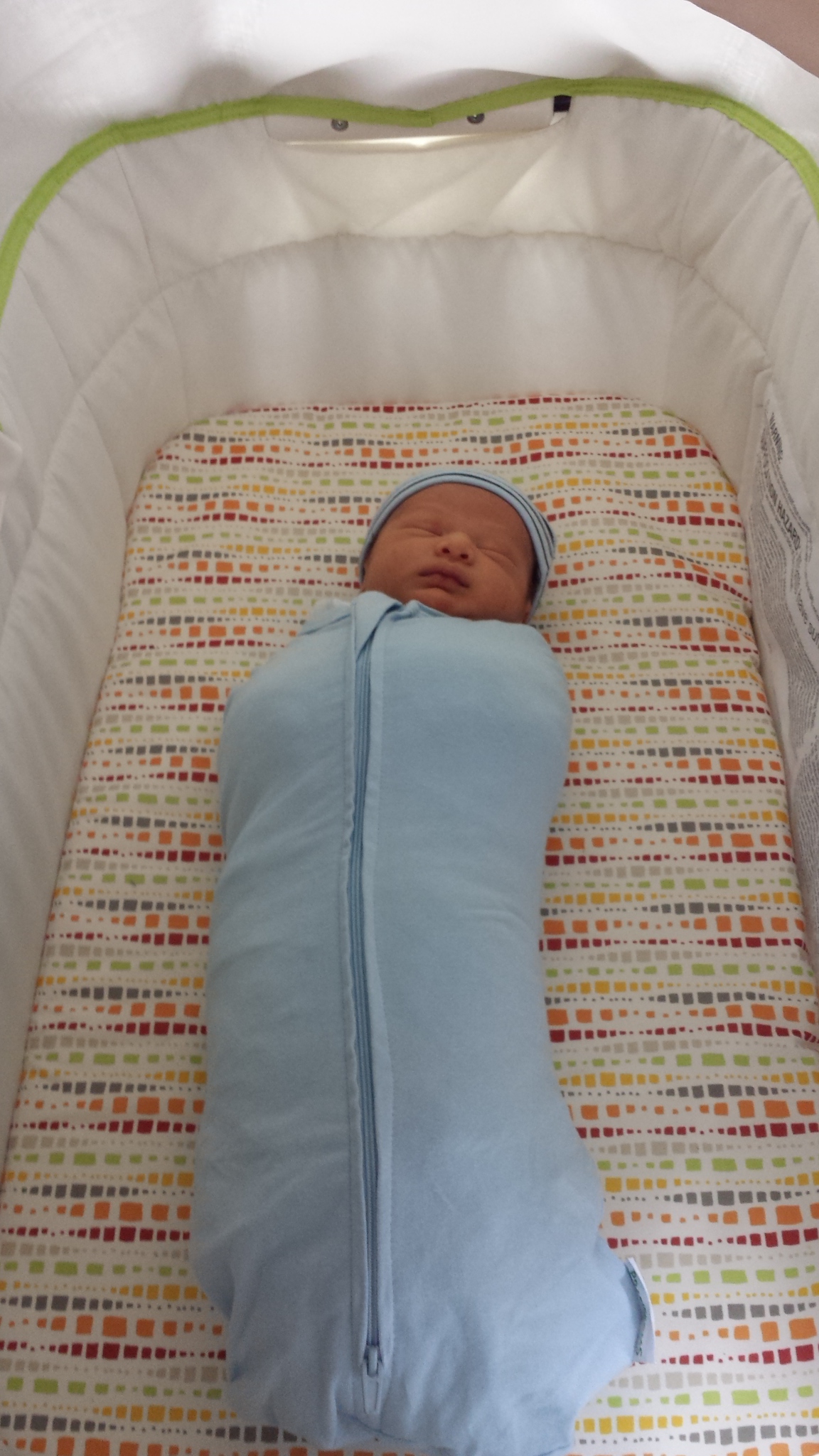 Cole is wrapped in a blanket, and then placed inside this swaddling sack. I’m sure that’s not the technical name, but that’s basically what it is. He is perfectly content, but it makes me hyperventilate to think about being wrapped up like that. I commented that he looked like a little burrito, and his mommy, with a nod to her Cambodian heritage, said, “No Nana, he looks like an eggroll.” I guess with his daddy’s Swiss and Polish heritage, you could also say he looks like a little sausage!