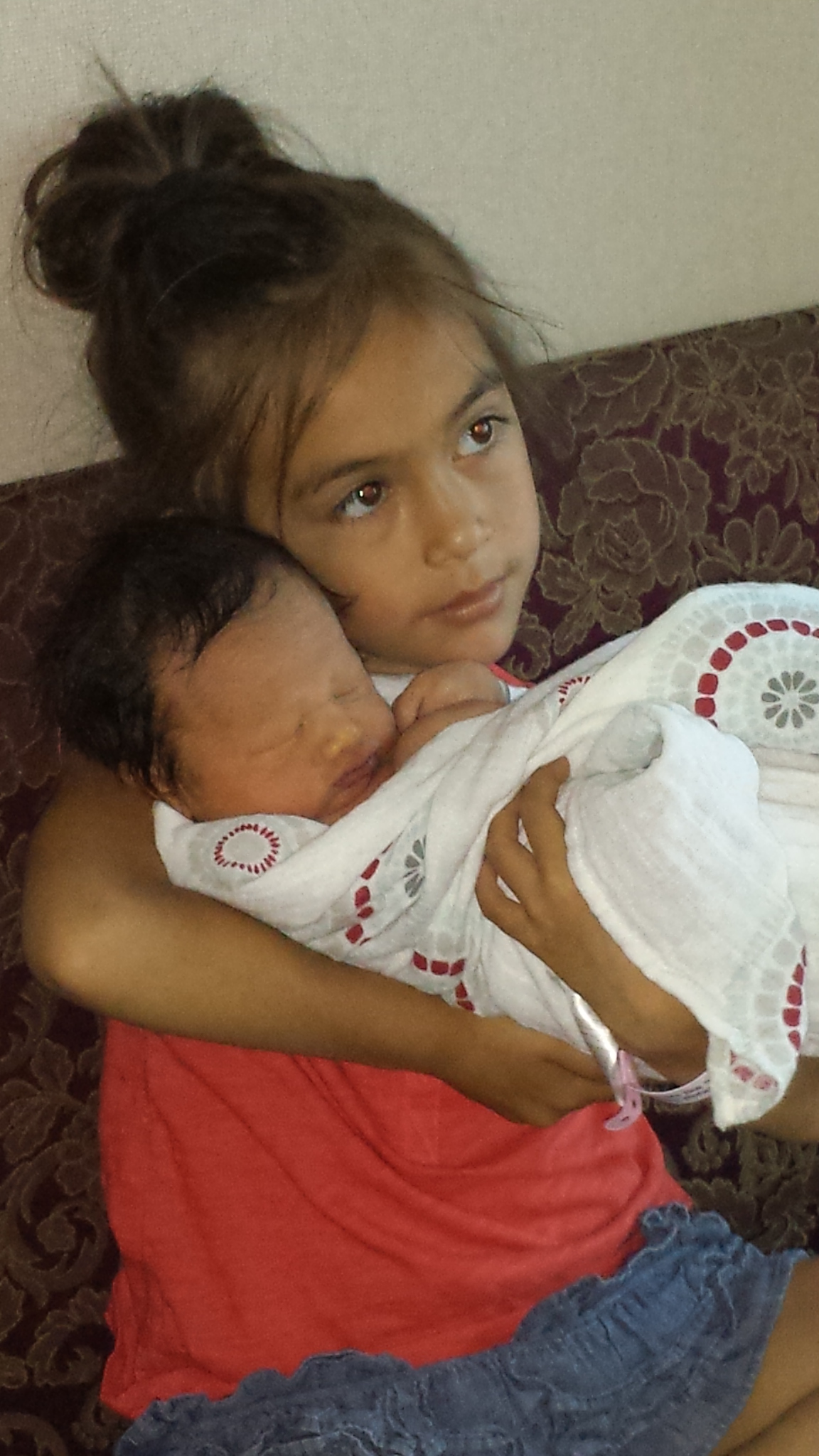 On Monday, Kaiya, being a proud big sister, told her teacher and her class that she had a new baby brother. According to Kaiya’s teacher, this is what Kaiya told her: “My mommy broke a glass of water and then she knew she was having a baby.”