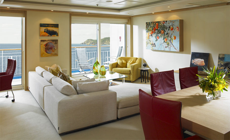 I’m not sure exactly how or why it happened, but sometime recently I received information in my email inbox about a cruise line called The World. The difference between The World and say, Royal Caribbean or Princess Cruise Lines is that The World’s ships provide permanent luxury residences. Emphasis on luxury. There have been rumors circulating for years that there are people who choose to retire aboard cruise ships. According to some, it is cheaper to permanently cruise around the world than to pay for living in a retirement community. I can’t confirm that this is in fact true. But the idea intrigues me nonetheless. After all, you have on-board doctors, entertainment, restaurants, lecturers, church services, 24-hour food, chocolate buffets and a 70s night once a week. What more could you want? Not that I plan on doing it, mind you. According to my brother, cruising – just like riding roller coasters – is tempting fate. He says sinking – or running into an ice berg (even if you are sailing the Caribbean) – is, well, just a matter of time. But Bill and I do like to travel on cruise ships. Our first cruise was sometime around 2006 or so, a Caribbean cruise on Princess Cruise Lines. Having not done it before, neither of us was certain whether we would love it or hate it. I think it’s hard to feel neutral about cruising. We love it. So in 2008, we boarded a Royal Caribbean cruise ship in Galveston, TX, and spent two weeks traveling across the Atlantic Ocean to Barcelona, Spain, where we began our three-month adventure. We did the same thing a couple of years later when we traveled from Miami to Rome, spending two weeks crossing the Atlantic. On that trip, we actually stayed in the same room on the same ship, and traveled around the Mediterranean, where we visited such places as Egypt and Greece. We were on that same ship for a total of 28 days. I never once got tired of it. Of course, there is a big difference between 28 days and 365 days year after year. Out of curiosity, and after watching the seductive video included in the email, I looked online to find the cost of buying a residence on The World. Bill and I could buy one of the 200 residential units aboard The World for somewhere in the vicinity of $3 million up front and an annual maintenance fee of up to $270,000. I guess if I had to ask the price, I couldn’t afford it. Of course, if I can afford a condo costing several million plus a three-figured maintenance fee, I can afford to fly home and visit my grandkids. Being a half world away from them most of the time would be one thing (in addition to the imminent ice bergs) that would prevent me from living aboard a cruise ship. But I am seriously curious to know if it is actually affordable and sensible to spend one’s retirement years aboard a regular cruise ship. Our rooms on the cruise ships were tiny and plain. It worked just fine for our time at sea. But it might drive me crazy to live in such a small space permanently. Maybe it wouldn’t. After all, you have the whole ship on which to wander around. And it would always be reasonably warm because the ships generally cruise the Caribbean in the winter and the Mediterranean in the summer. You might have some chilly days on the way to and fro, but most days would be quite pleasant. Wouldn’t they? Of course, you have the whole issue of medical care. There are on-ship doctors who could treat colds and the flu, but what about serious illnesses? We have an acquaintance who fell on a ship and broke his arm. He ended up in a hospital in Naples, and doesn’t have especially fond memories of his experience. But if the fine folks of Napoli can’t provide good health care, they certainly can compensate by making delicious pizza. Perhaps in order to even consider this option, you have to be fairly active and healthy. After all, no matter where you live, your body is however old your body is, and your bones are the same age. Perhaps being 75 years old and living on a ship that occasionally lists violently is not a great idea. Just for the sake of comparison, here is a photo of a suite on The World….