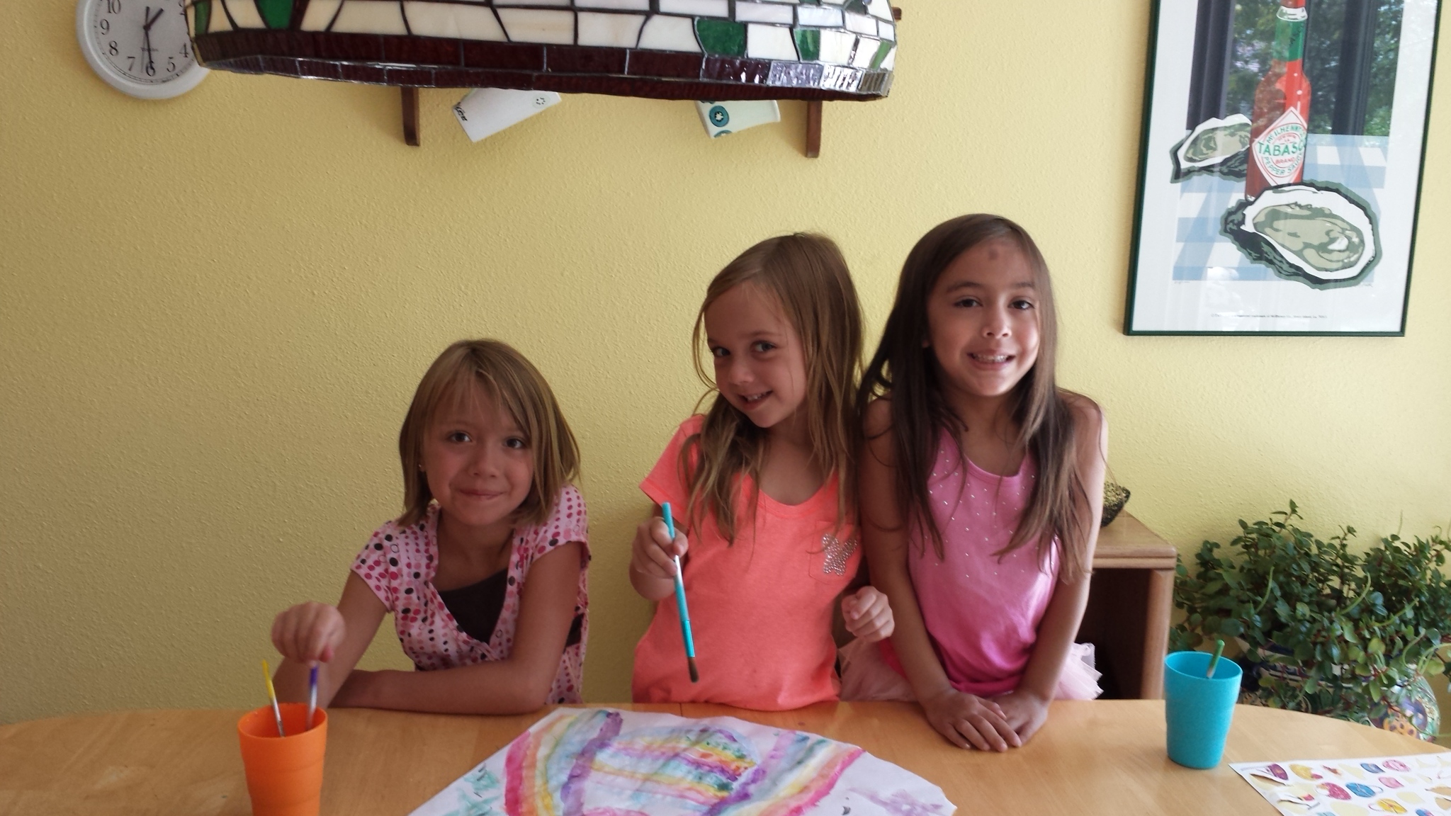 Dagny, Magnolia, and Kaiya water painted a group picture.