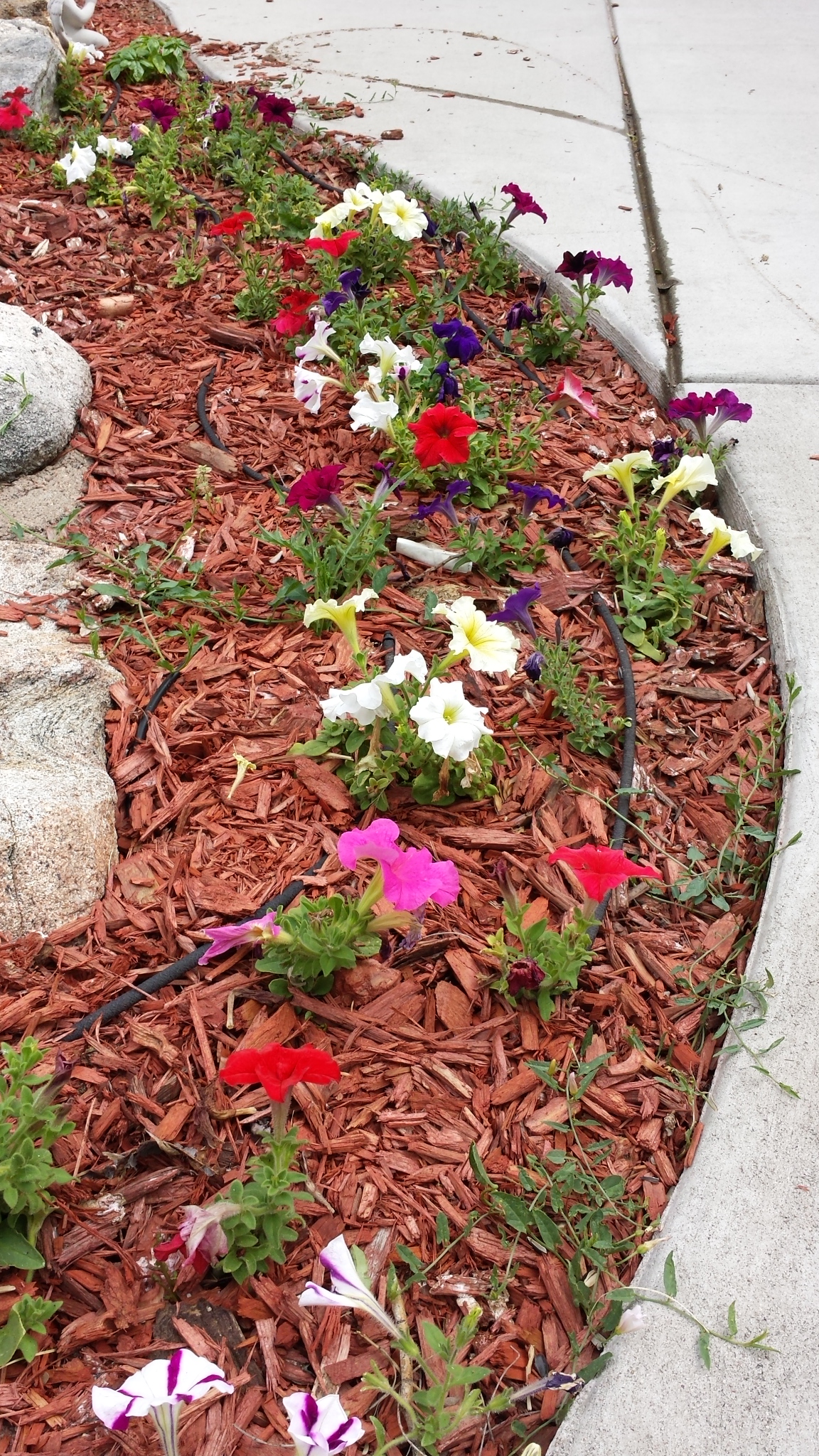 I love the flowers that bloom all summer long here in Denver. I enjoy all of the flowers in the neighborhood as I take my morning or evening walks. Every year I plant colorful petunias in my flower bed at the edge of my patio, and I am embarrassingly happy to sit there in the evening and enjoy them. Sometime mid-August, they start getting pretty leggy and less pretty, so I enjoy them while I have them.