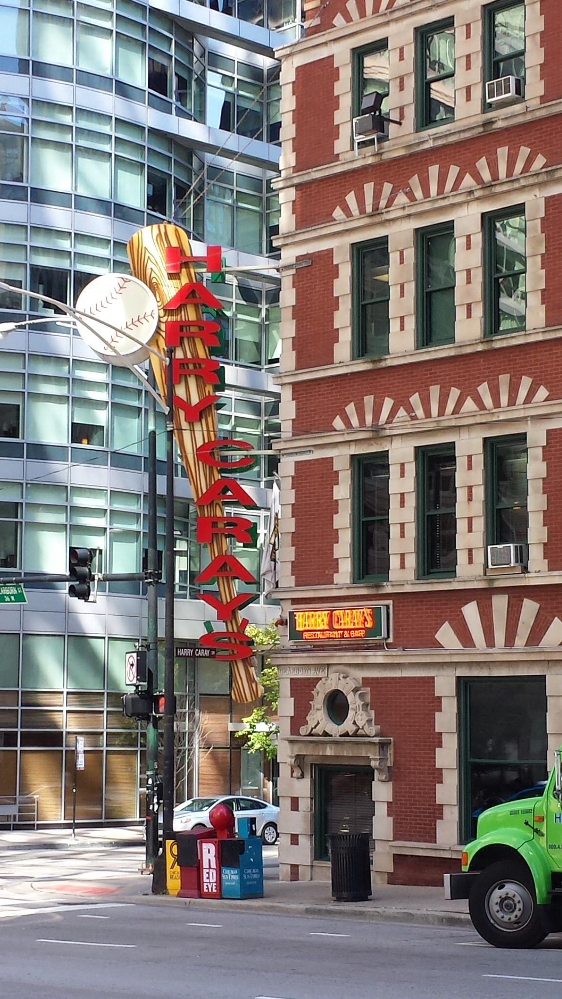 And Harry Carey, of Chicago Cubs fame, has several restaurants in the Chicago area. Their landmark restaurant is downtown with the cutest signage ever….