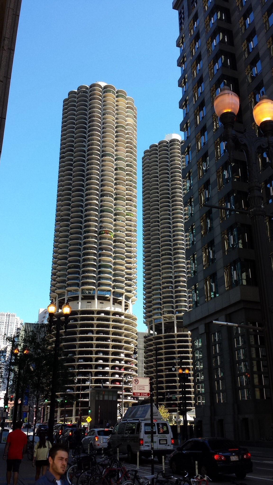 We boarded at the train station nearest his mom’s house, in a southernmost suburban middle- to upper-class community in the morning. As we headed towards the city, we passed through industrial areas, areas with huge houses, and areas that seemed shockingly poor as we neared downtown. We went past Bill’s high school, were very close to the house in which he spent his formative years, sailed past Comiskey Park (now, sadly, called U.S. Cellular Field), and as we neared the city, I spotted Sears Tower (which, again sadly, has the new name of Willis Tower. Hmpfff.) and began to get very excited.