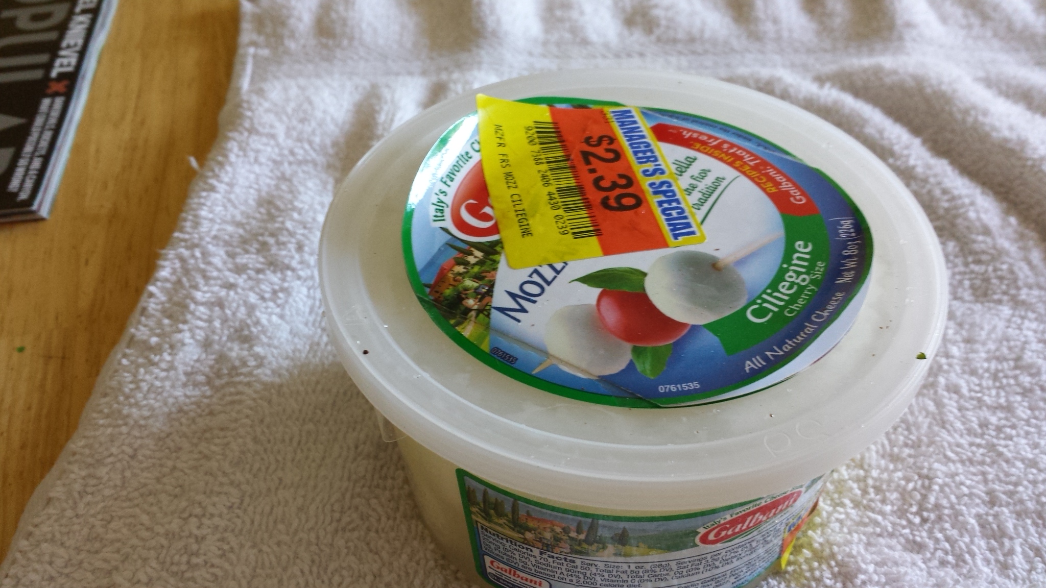But then I got to thinking….there were probably four or five containers of this fresh mozzarella cheese, all with Sept. 16 expiration dates. Few people actually buy fresh mozzarella, so I surmised that no one would be buying all five containers before the pull date. Why not, I said to myself, ask them to sell me the container for a buck?