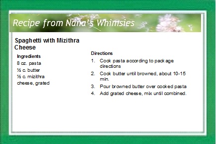 You are officially an Honorary Greek, having discovered the secret to great spaghetti – myzithra cheese! Opaa!