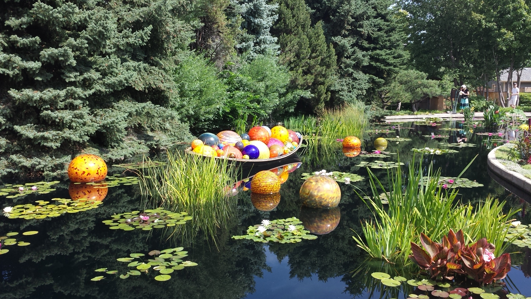 Undoubtedly many of you have had the pleasure of seeing a display of the amazingly beautiful glass designs by glass artist Dale Chihuly. I saw the exhibit a couple of years ago at the Phoenix Botanical Gardens, and was lucky enough to see it again last summer at the display at the Denver Botanical Gardens. The colorful glass designs amidst the gorgeous foliage and as part of pretty water features are a sight to behold.