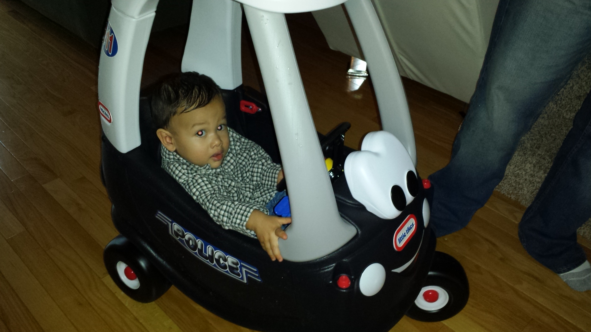 Amidst visits from grandkids, swim meets, dive meets, beginnings of a kitchen remodel (more about that later), our youngest grandchild, Cole Jonathon, has brought smiles to my face. The boy, a mere 1 year old, LOVES vehicles. Place him in a car or a boat or a train or anything that has wheels or moves, and he acts as if he has been there a hundred times before. He even has the elbow-out-the-window down pat.