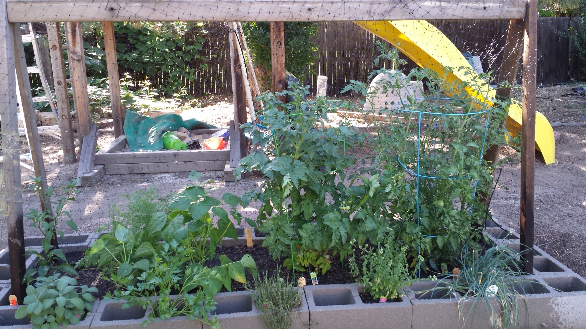 My lovely garden survived my time away, a surprise because while Bill remembered to water most of the outdoor plants, he forgot the vegetables. When I went out early Monday morning to see how it had fared, I noticed that the jalapeno that had been tiny when I last saw it was GONE. Oh, was I ever mad. Either a bunny or a squirrel or a bird had nabbed it. It isn’t to my credit that I literally yelled out loud to the universe, “I hope you burned the crap out of your mouth you little shit!” A day later, Bill had constructed a pest control system that consists of a wooden frame that holds netting. It makes it a bit more difficult to harvest, but it should prevent more jalapeno thefts.