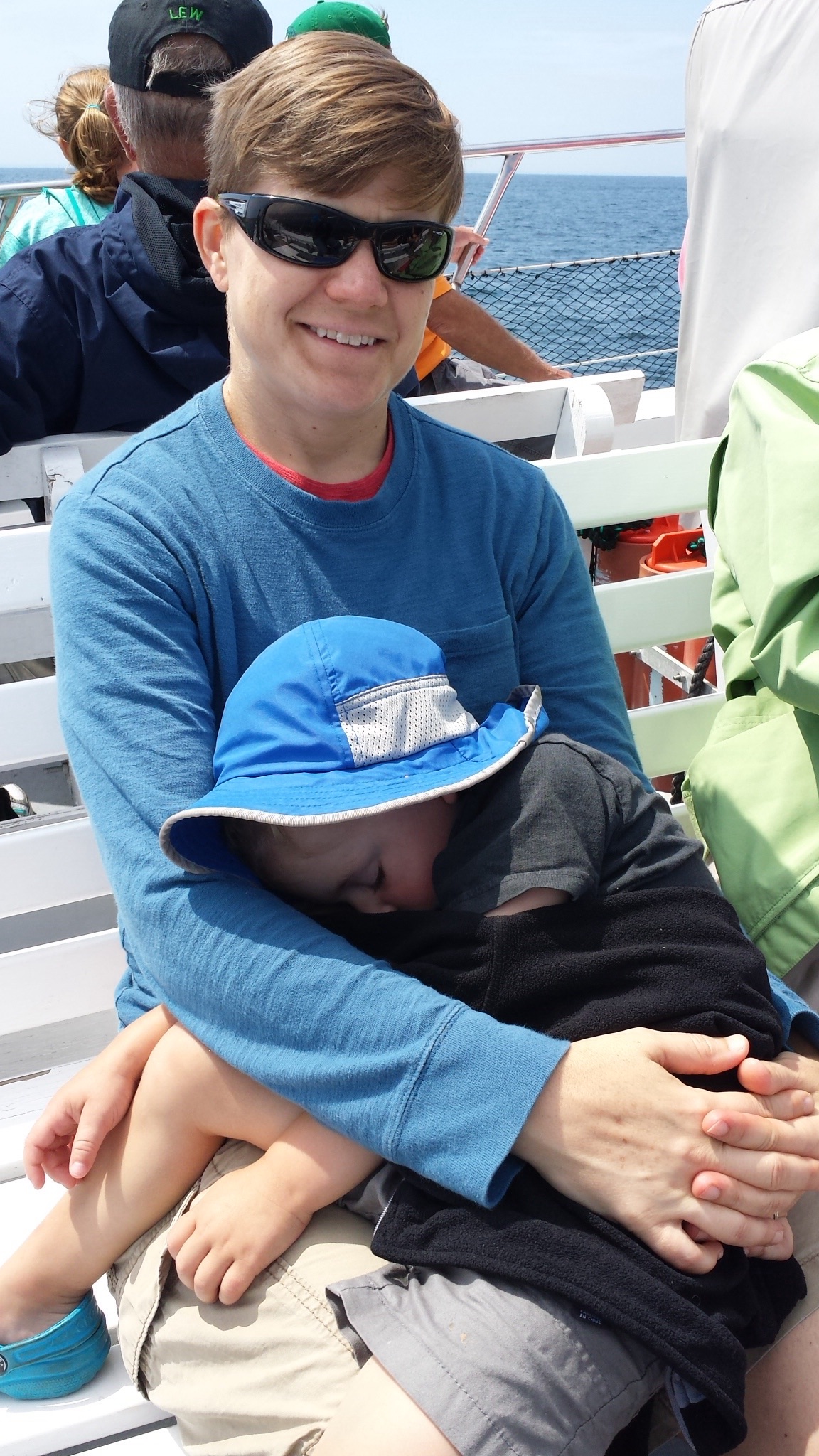 It was the first such tour for any of us, and we were not disappointed. The tour boat was not large but we had plenty of comfortable space up on the top deck. I am not ashamed to admit that I had some serious concerns about a very busy 3-year-old boy on a four-hour whale tour. My concerns were unnecessary, as both boys were engaged and happy to be part of the whale watching team. For our parts, we hung on very tightly to 3-year-old Micah who — I’m happy to report — did not even come close to going overboard.