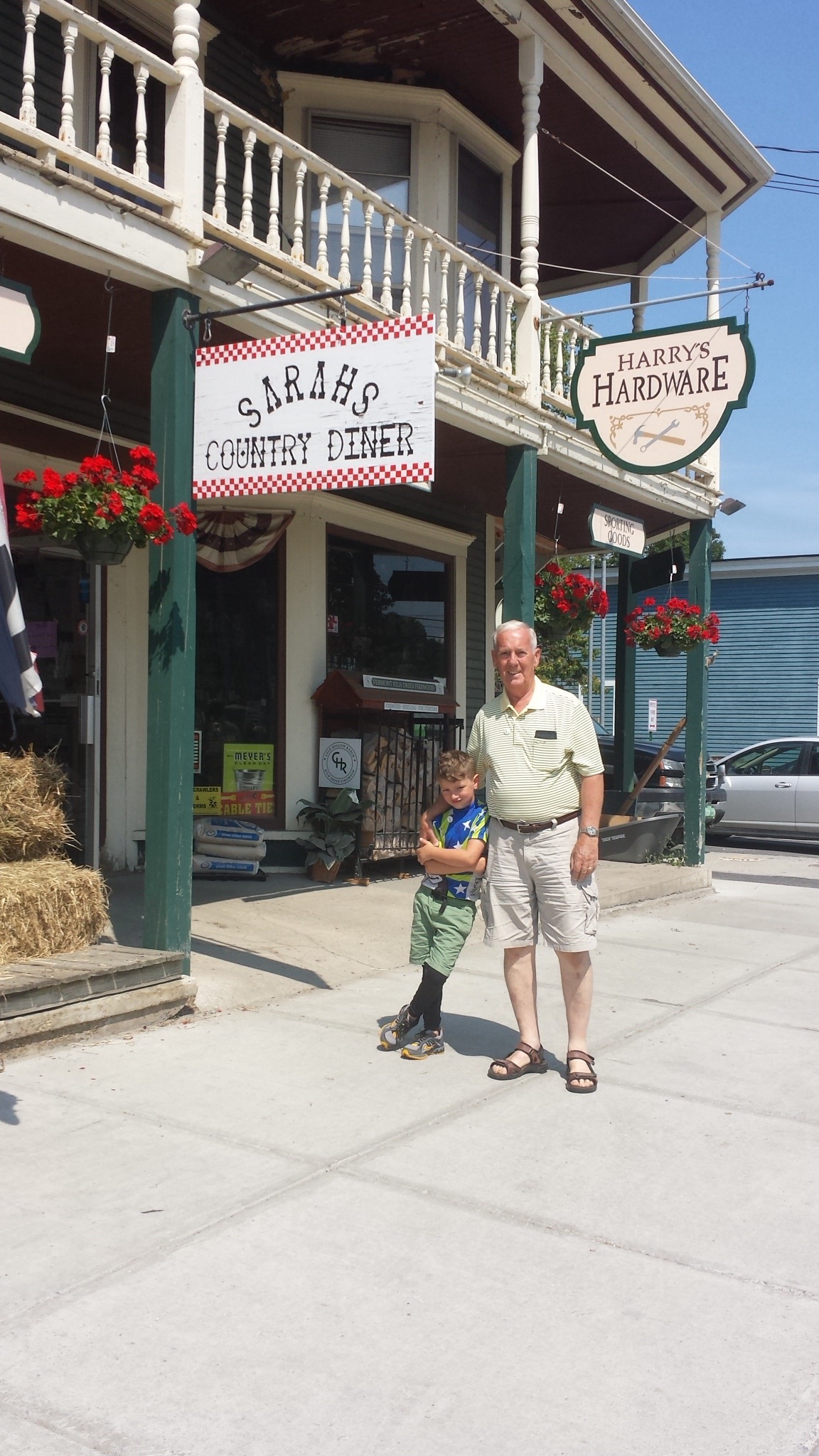 Yesterday afternoon Bill and I took Joseph with us to tour the Cabot cheese factory. The tour was interesting and the samples were, of course, extraordinary. But the best part was lunch afterwards. Bill asked the Cabot people for a recommendation of a place for lunch. Sarah’s Diner, behind the hardware store, the young woman told him. We walked to the hardware store, expecting to see a diner sitting behind it. Nope. You had to actually walk through an old fashioned, small town hardware store, and the tiny diner was in the back. Two tables and a four-stooled counter. Four or five things on the menu. The owner, Sarah, was all by herself. She took orders and then went behind the counter to cook your food. I was looking around for Aunt Bea.