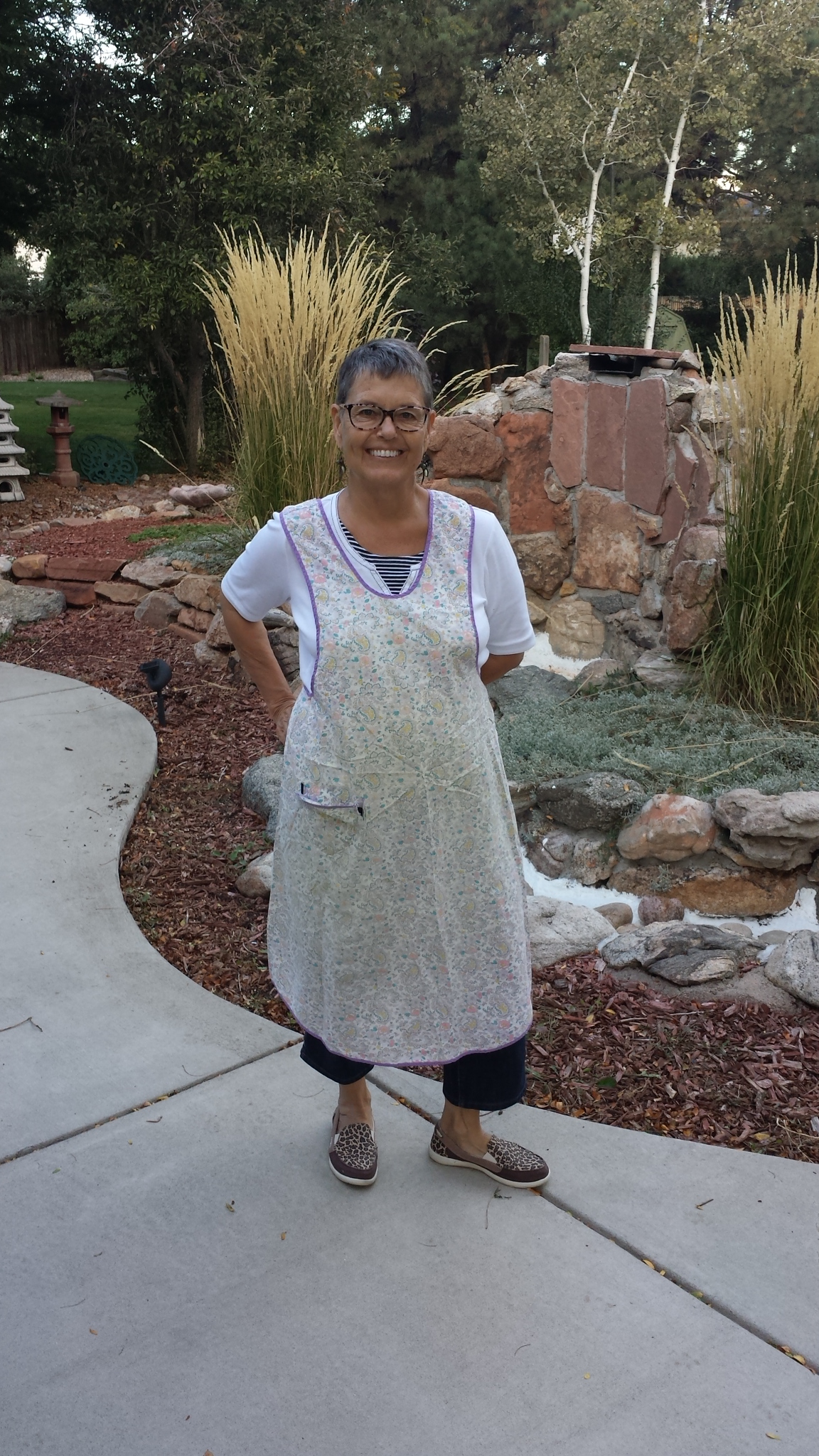 And finally, my last smile has nothing to do with grandkids, except for being one. My cousin Bobbie generously sent me one of our own grandmother’s aprons, with the only caveat being that she wanted to see a photo of me wearing it. When I took it out of the package, the first thing I did was put it up to my nose to smell it. I’m sure I imagined it, but I thought the fragrance was that of Grammie, and I immediately teared up. It’s a bit big, but what do you think?…..