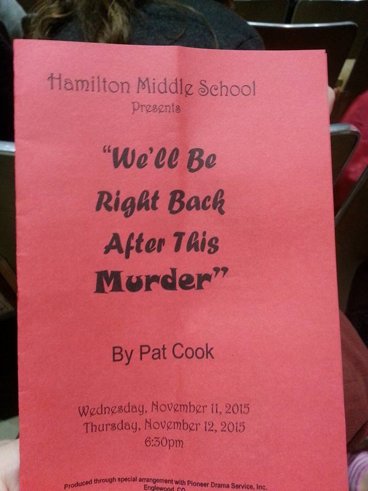 But the bad thing is that we sometimes miss significant occasions in our grandkids’ lives. For example, this past week, our eldest granddaughter Adelaide — a 7th grader at Hamilton Middle School in Denver — had a role in her school play — We’ll Be Right Back After This Murder. She played Dorthella Hepplewhite who may or may not have murdered her brother. I don’t know because I DIDN’T GET TO SEE THE PLAY. Addie’s character had a significant number of lines, which isn’t a problem for Addie who likely not only memorized her own lines, but also those of all of her fellow cast members. It’s how she rolls. With luck, she was able to keep her lips from moving as she recited their lines along with them. The play apparently went very well, judging at least from the text messages I got from her throughout the two days that the play ran.