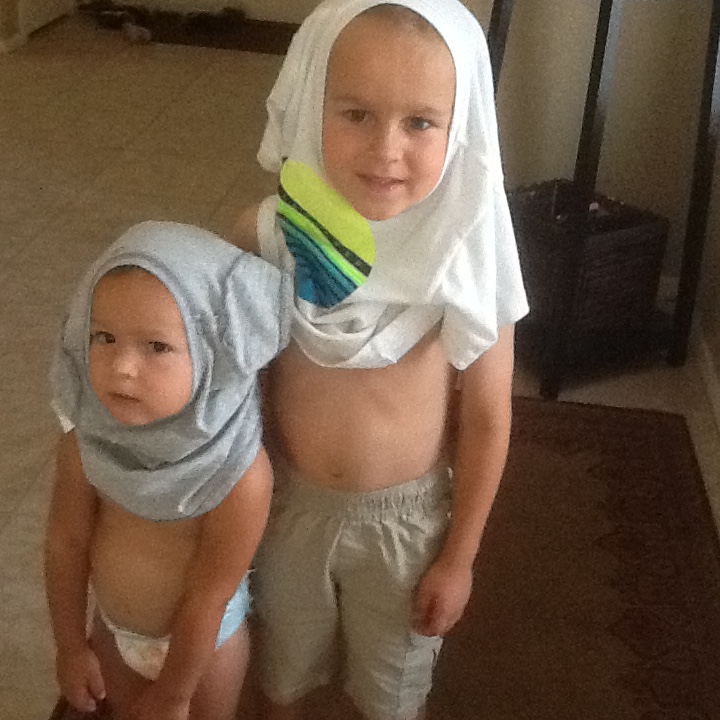 I will tell you that Lilly took the lead on the shirts over the head, but as for everything else, she does WHATEVER AUSTIN DOES!.