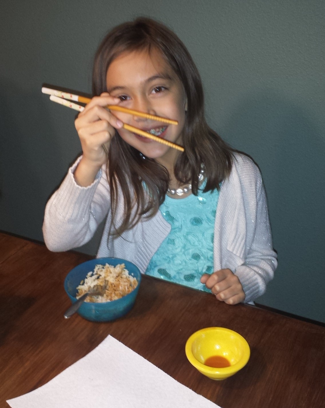 On Thursday, we celebrated Christmas with Court and his family with dinner at our house. As usual, a sushi tray was the beginning of the show. Kaiya demonstrated her newly-learned chopstick skills to me….