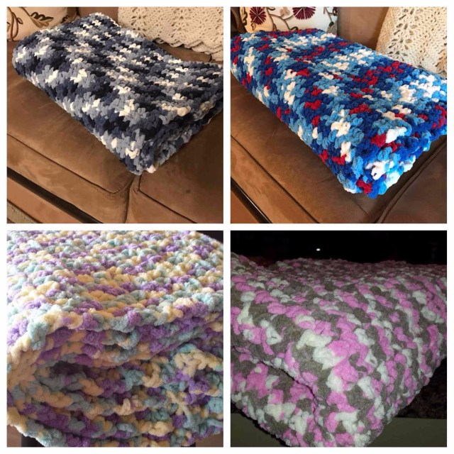 I’ve committed to making one of my beautiful afghans for my grandson Alastair. Up until now, I have been steadily crocheting these afghans, which are simple to make but look and feel amazing because they are made of Bernat blanket yarn – a thick and extremely soft yarn, perfect for snuggling. He is feeling a bit left out because I hand-made items for each of the girls for Christmas. I attempted to make him slippers, and I found that for reasons I can’t explain, I simply had no luck. They were huge. They were crooked. They were awful. So I bought him a pair of slippers. So when they were here, he asked for one of those afghans. I have the yarn and my will is strong; however, it has been in the mid- to upper-90s, and sitting beneath blanket yarn has been quite unpleasant. I will persevere, however. His birthday is in April.
