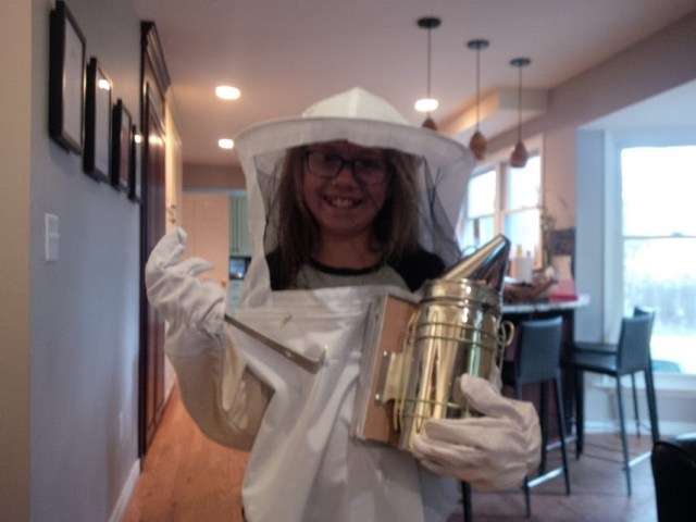 Last but most assuredly not least, Miss Dagny shows off her beekeeper’s attire as she and her family embark upon a beekeeping adventure. They have the clothes; they have prepared a spot in the back yard; now they just are awaiting the bees. A lot of cuteness underneath the protective gear…..