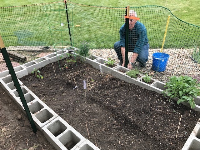 And so now Emma’s garden, er, my garden has a beautiful fence around it, sturdy enough to keep the foxes out. She, er, I planted a tomato plant, a jalapeno plant, some green beans, carrots, radishes, thyme, parsley, and basil. I also put in petunias, though I will still need to put in more so that my garden can be full of color in a month or so. And, by the way, it really was me who planted the petunias…..