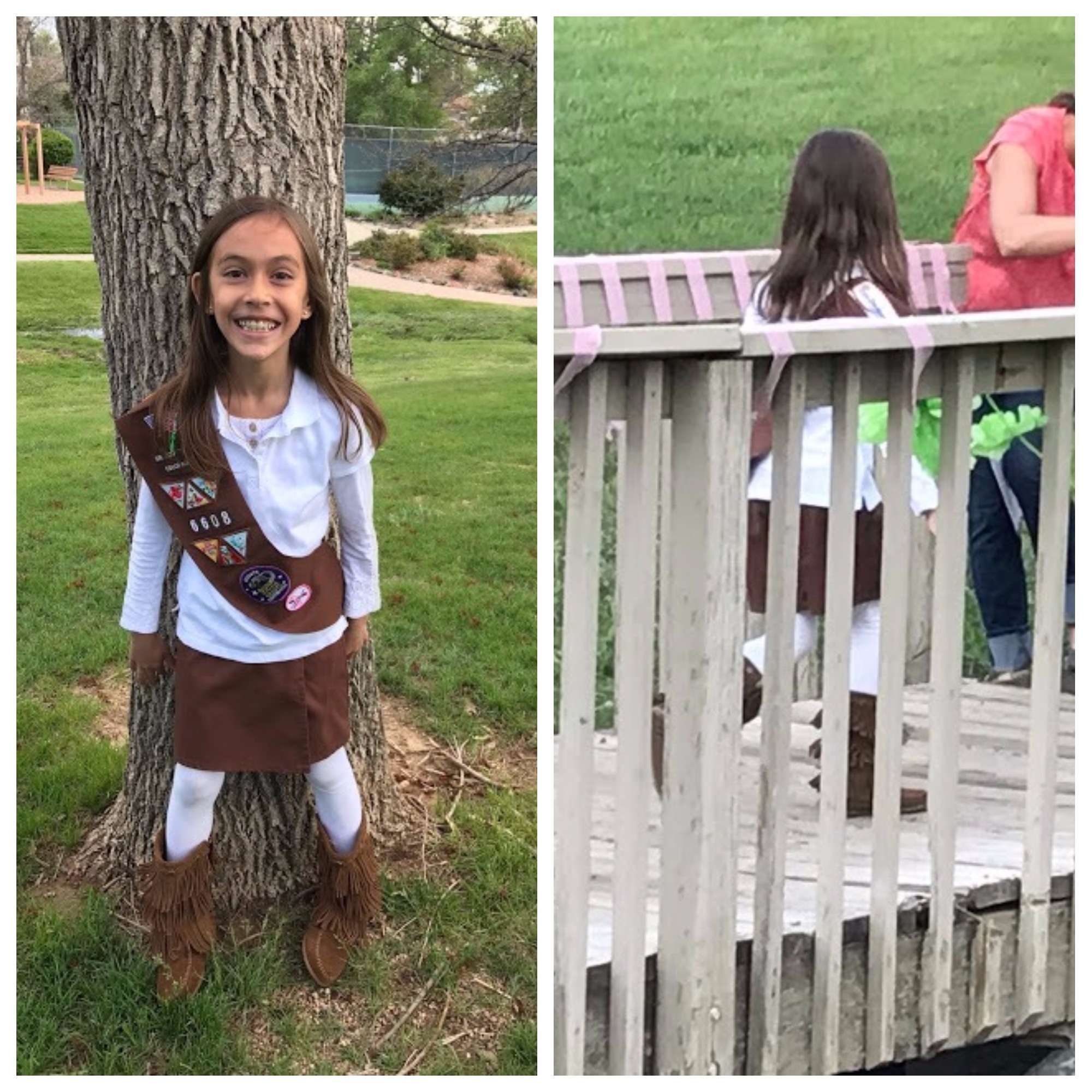 ….watched Kaiya’s bridging ceremony (during which she actually walked across a little wooden bridge in a park near her house symbolizing her move from being a Brownie to being a Junior Girl Scout)….