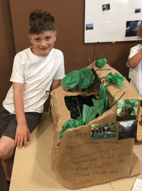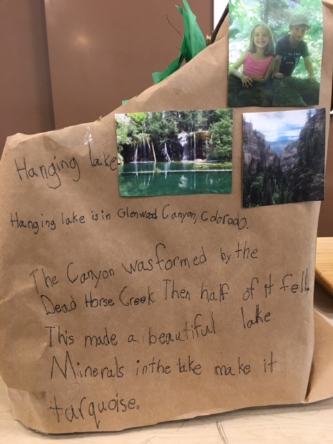 My 8-year-old grandson Joseph’s class has been studying landforms. (Trust me; when I was 8, I didn’t know what a landform was. I can only even now just guess.) At any rate he was able to choose any landform in the world, and after much consideration, he chose Hanging Lake, just outside of Glenwood Springs. He visited Hanging Lake a year or so ago with the McLain clan when they were visiting from Vermont, so he was able to speak with authority about his project…..