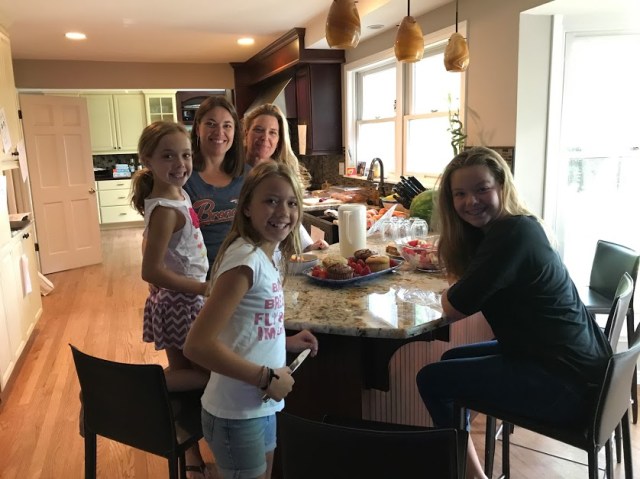 Yesterday was Dave and Jll’s 20th wedding anniversary. I got a call from Maggie Faith early yesterday morning. The kids were planning a little surprise party for their mom, and would Papa and I like to join them? I said yes for me and no for Papa (who didn’t want to take a break from installing flooring). The girls had put together a nice little mid-morning breakfast of muffins and tea sandwiches, and I brought a fruit salad. Upon Maggie’s order, we sang Happy 20th anniversary to you as we marched into Jll’s office. She was indeed surprised……