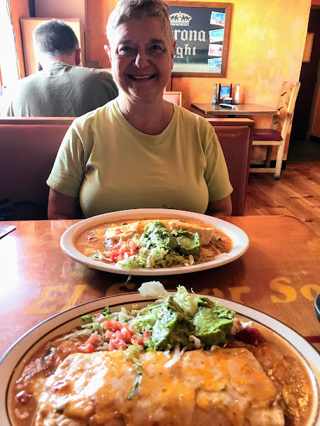No, I don’t want to scare you. I’m not pregnant, nor are any of my grandkids. It’s my burrito that’s pregnant. Even before Bec arrived in Colorado, she warned me, “I’m in the mood for Mexican food. Be prepared.” I have mentioned before that the Mexican food in AZ is a lot different from the Mexican food in Colorado and New Mexico. The difference is most notable in the green chile. In AZ, burritos might be filled with a version of green chile whereas in Colorado, burritos will be smothered in green chile. Anyway, there is a Mexican restaurant to which I have taken Bec before called El Senor Sol. I can’t say that it’s significantly better or worse than other Mexican restaurants. What I can tell you, however, is that they have something on their menu called a Pregnant Burrito. That, my friends, is a bean burrito with either a chile relleno or a cheese enchilada stuffed inside. The first time that we ordered this particular item, Bec’s and my expectations were unclear. We each expected the relleno or the enchilada to be on the side. So when the server set down a plate containing a single burrito, we both looked confused. “Excuse me,” I said politely. “Where is my enchilada?” The server gave me one of those looks, and said, “It’s inside the burrito, you nimwit.” Well, she didn’t actually call me a nimwit, but I know she thought I was exactly that. “Oooooh,” I said. “That’s why it’s called a pregnant burrito. I’m certain she rolled her eyes. At any rate, they are delicious, and now we have the whole pregnant thing NAILED…..