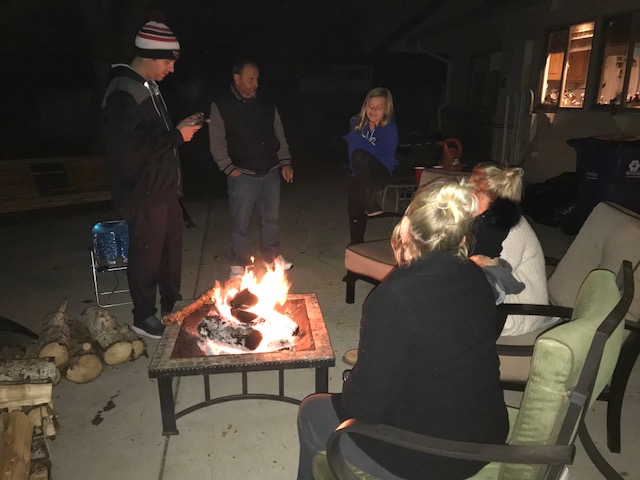 The above-mentioned kids were yearning for snow. They won’t get it, however, something about which they are sad and about which I am thrilled. Playing outside and all that jazz. But last night was plenty chilly and they happily sat around the firepit, bundled up and wishing their Great-Aunt Kris had thought about s’mores…..