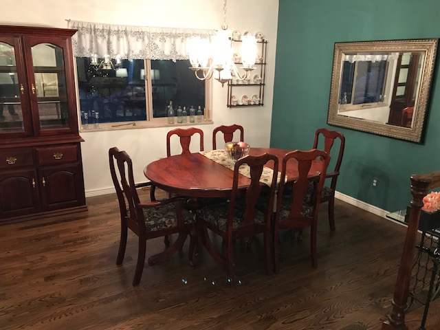 The floors in the formal dining room were previously also hardwood of the same light color as Bill’s office and the kitchen.