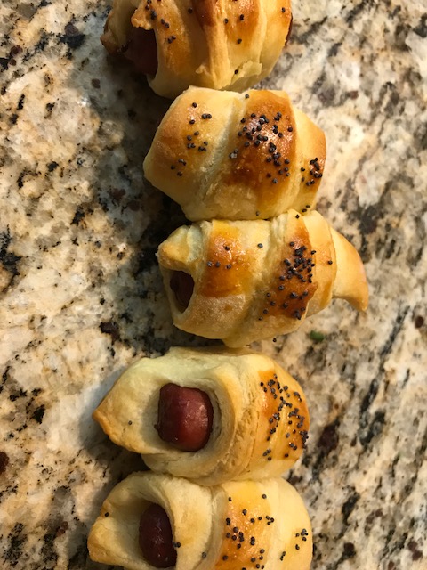 But at least for me, one of the good things about entertaining is that it requires me to clean the house. I’m not ashamed to admit I take a bit of prodding when it comes to homemaking — unless it’s cooking. My specialty? You guessed it. Pigs in a Blanket. I make them fancy by sprinkling on poppy seeds. I’m pretty sure then people think the party was catered…..