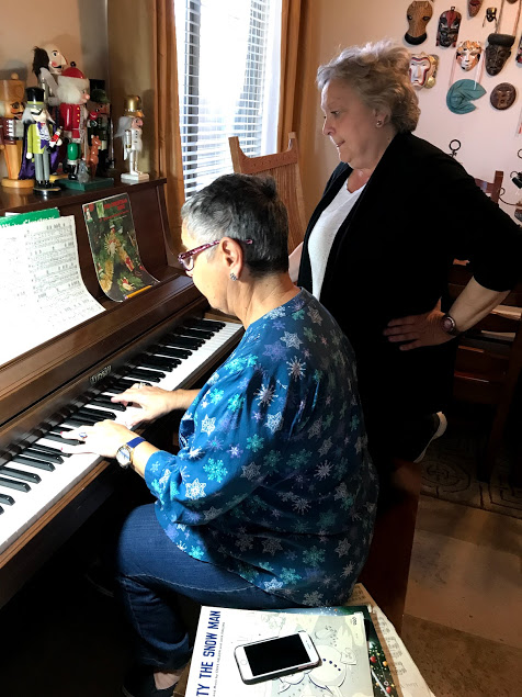 When we were growing up in Columbus, Nebraska, part of our family’s annual Christmas festivities was singing Christmas carols. All three of the girl children took piano lessons, but really, it was only Bec who accompanied all of us as we sang. And when I say “all of us,” I mean Mom and Dad too. It’s something we haven’t done for quite some time, as you can imagine. So the other day when Bec told Jen and me, “Gosh, I wish you guys could come over and we could sing some Christmas carols,” it took only a bit of time to decide we would do just that.