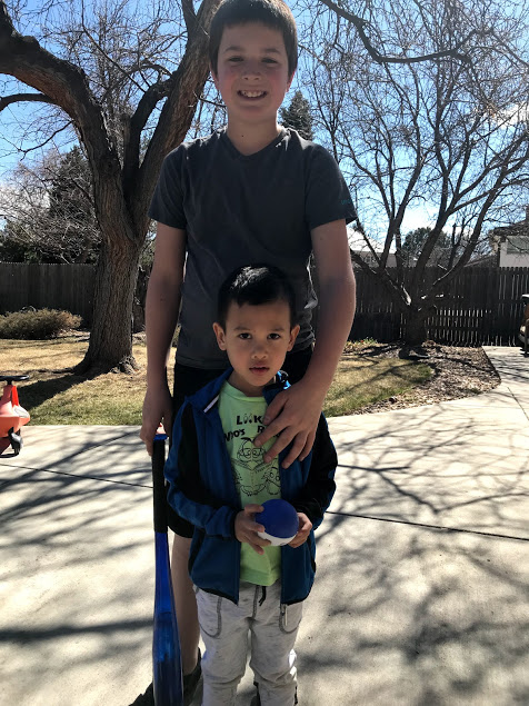 Saturday, all of the Colorado grands wandered in and out of our house at different points in time. Alastair and Cole played outside…..