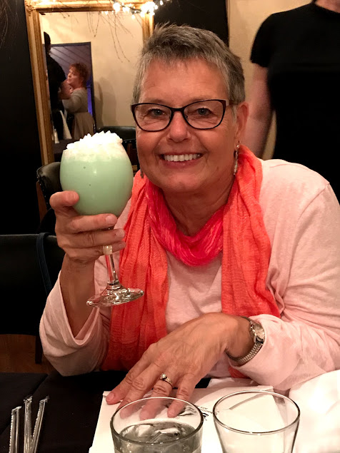 Sunday night, Bill and I went to dinner with friends who were celebrating their 50th wedding anniversary. What a great achievement, and what a lot of fun we had with John and Carol and a few of their friends and family. We went to an old school steak house and I had an old school dessert drink – a Grasshopper…..