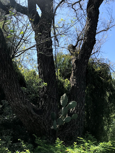 Cacti are hardy plants. They have to be, given where they grow. Here is a prickly pear that grows right out of the trunk of a tree. I love nature…..
