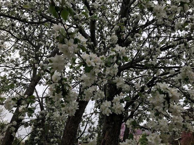 I had arranged to have someone cut our grass so that we didn’t have to hit the ground running with yard work, and it was nice to see the pretty green lawn when we pulled into our driveway. Not only that, but since we arrived home sooner than we have the past few years, we are able to enjoy these lovely spring blessings…..