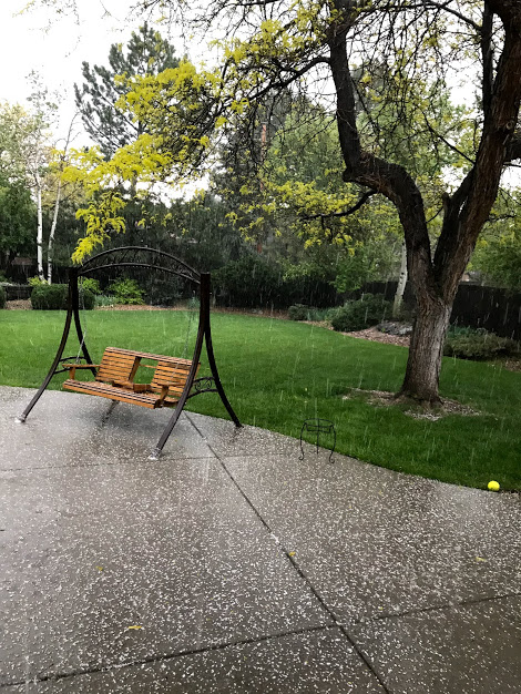 By time they finished dragging the garbage bags to the curb, it was raining hard. And within minutes, it was a virtual downpour. Almost on cue, the hail began…..