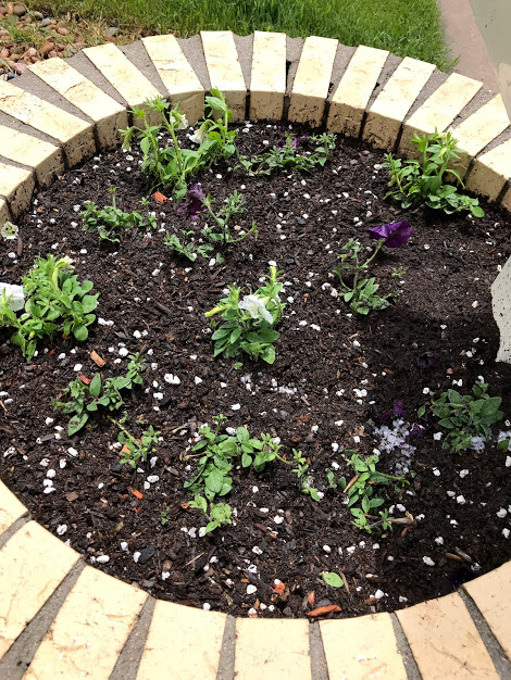 Now, here is some important information: May and June are typically months where you can expect to see violent weather in Colorado. There are thunderstorms with strong lightning, tornadoes, high winds, hail ranging from pebbles to golf balls. But that did not stop me from planting my petunias in my front garden box. Nope. I carefully placed 12 purple and white petunias into the dirt that Court had just poured into the flower box.