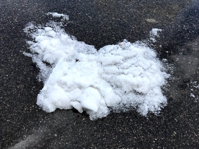 All that remained to prove that a storm had passed through were several piles of hail…..