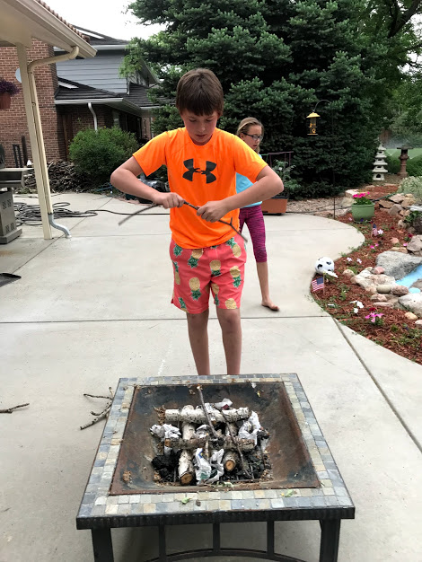 Sunday evening Court and Alyx and the kids joined us for a dinner of ceviche, carne asada, and Jen’s homemade Spanish rice. For dessert? Why mess with perfection? S’Mores. This time Court was in charge of the fire. He was a bit more challenged by wet fireword from a shower earlier in the afternoon. Still, after a few fire starters, a nice fire was born…..