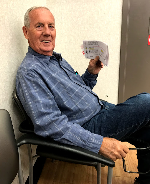 Bill is awaiting his shingles vaccine, part I. While he puts up with Parkinson’s disease with nary a complaint, shots are not his friend.