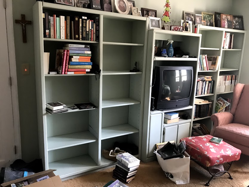 And the biggest problem I’m running into is the photos. OMG! The pictures. The pictures. One whole shelf was full of photo albums ranging from college days to the time when we all stopped printing photos and inserting them into albums. What do I do with those photos? I have pictures of Court as a baby, Court as a pre-teen, Court as a teenager, Court in college, Bill and I at every stage of our life. I have photos of Mom and Dad ranging from the 1960s until their respective deaths. I seem unable to throw them away. So instead, I’m taking them out of frames (if they are framed), and putting them all in an envelope. When I die, Allen, David, Heather, and Court will all get together and perhaps they will take a gander at the photos. And one of them will say to the other, “Who in the hell is that woman with Mom (or Kris)?” Because they won’t know my college friends. Heck, I can’t remember most of their names. But see above. I am unable to throw them away. I love each and every picture of each and every grandchild I have. And, by the way, I seem to have more of our oldest — Addie — than anyone else. Go figure.