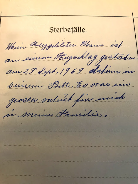 I can make out a few things. I know she documents the birth of all of her children and most of her grandchildren. And I know that she notes the death of her husband, my grandfather. Though I really can’t read it, I tear up every time I look at it…..