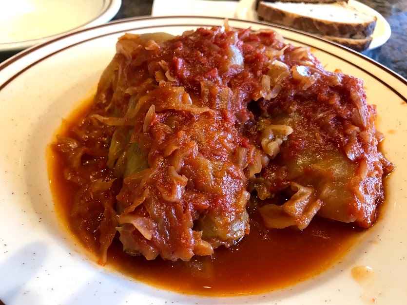 Despite the heat, when I asked Bill what he wanted for dinner so that I could purchase it while we were at the grocery store, he gave it some thought. “Hot roast beef sandwich,” he said, despite the fact that it was 100 degrees outside. Considering that at that point it was 3 o’clock in the afternoon — far too late for me to braise a pot roast — I said, let’s find a place that serves hot roast beef sandwiches and eat out. Let them do the braising. New York Deli News. As it turns out, neither of us had the hot beef. He had his favorite — roast turkey dinner…..